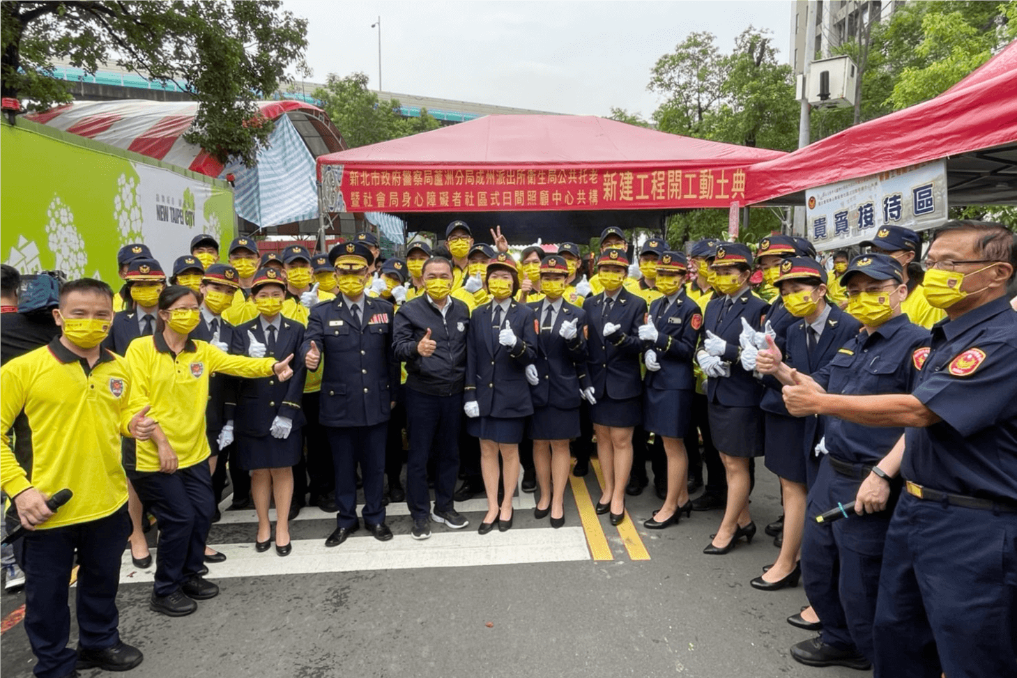 「蘆洲分局成州派出所、衛生局公共托老暨社會局身心障礙者社區式日間照顧中心共構新建工程」開工動土典禮,包括市長侯友宜、警察局局長黃宗仁、蘆洲警分局分局長張國哲及五股區區長洪崇璉共同出席典禮,一同破土象徵工程順利開工,並預祝工程能圓滿進行,典禮也邀請當地民意代表、貴賓及各界來賓觀禮,會場並有熱鬧的舞龍舞獅、鑼鼓表演,增添歡樂氣氛。