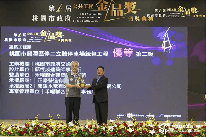 另外,2022今年度金品獎首次納入維護管理類參賽項目,亦凸顯本府對各項民生工程維護管理及保養之重視,更節省每一分公帑,給市民更好的宜居城市及優質的生活環境,讓基礎建設持續發揮最大的效益,正豪營造以及開鎰水電共同為臺灣建築和公共建設持續努力。