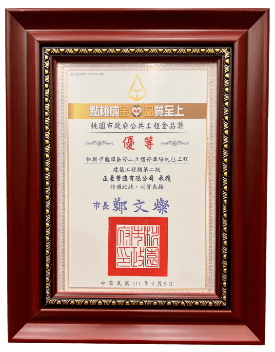 【正豪營造有限公司榮獲優等】