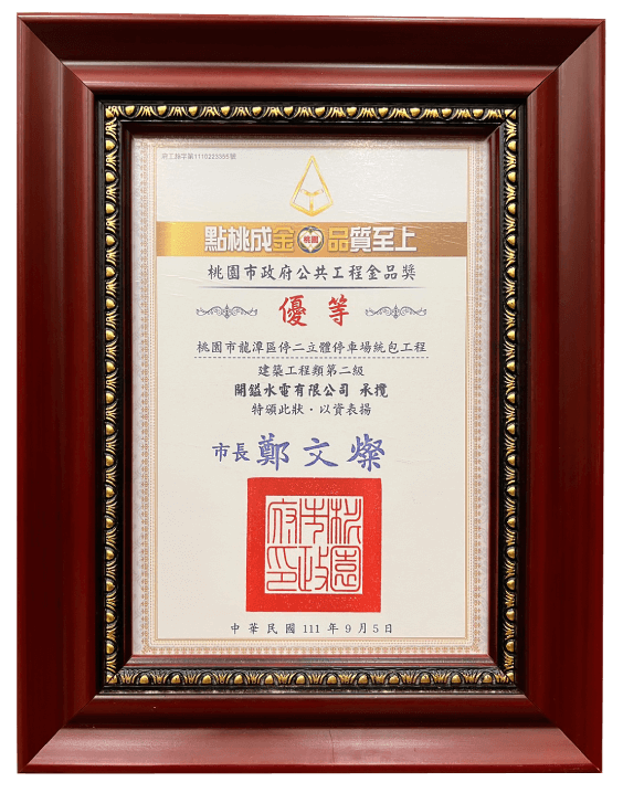 【開鎰水電有限公司榮獲優等】
