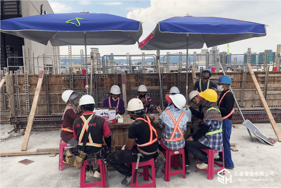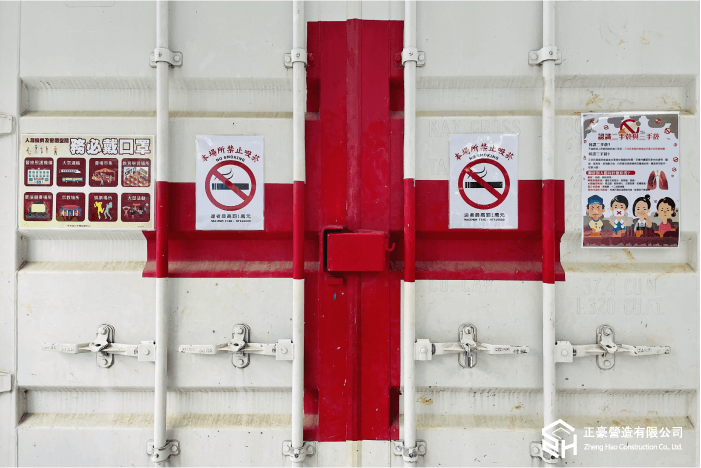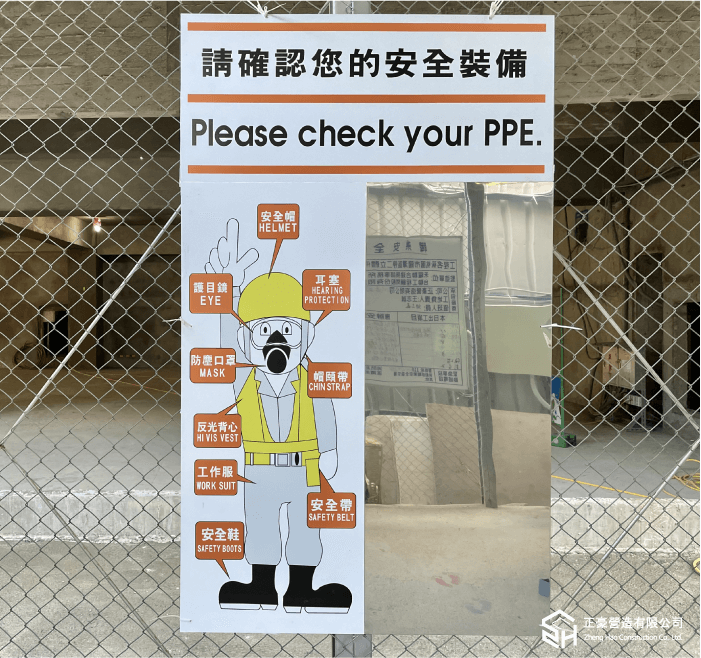 安全保障 – 嚴格執行穿著安全裝備。 1.進入施工現場人員配戴好安全帽。 2.特殊工種持證上崗,特殊作業配戴相應的勞動安全保護用品。 3.高空作業時,要繫好安全帶。 4.現場施工人員的著裝必須保持整潔。不得穿拖鞋、不得赤裸上身工作。